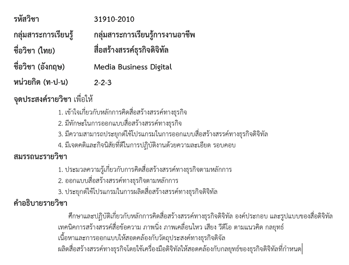 คําอธิบายรายวิชา